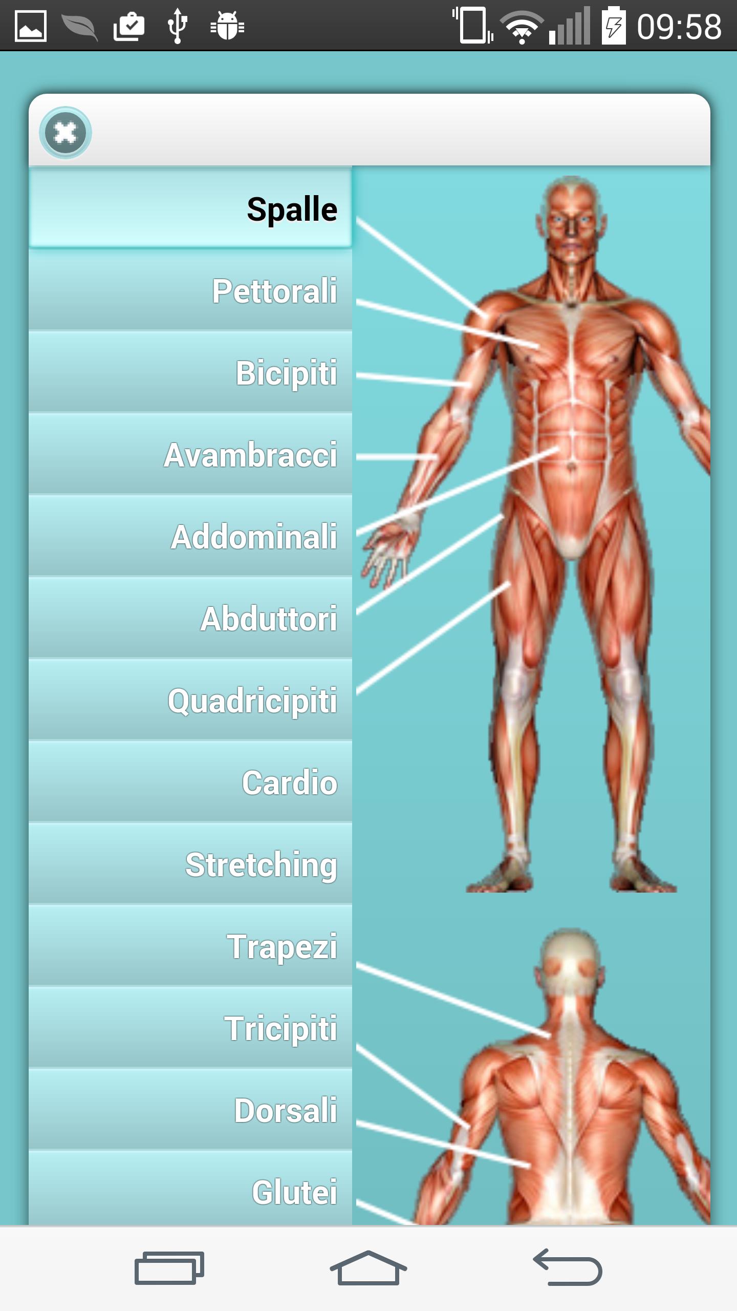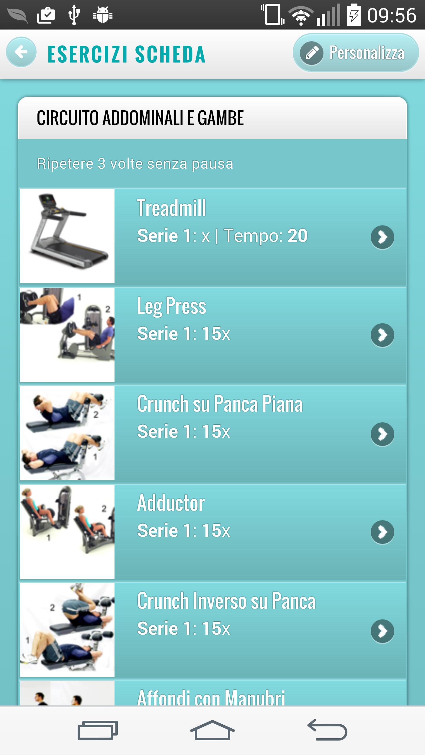 Library of 200 exercises selectable by name, muscle group or tool.
