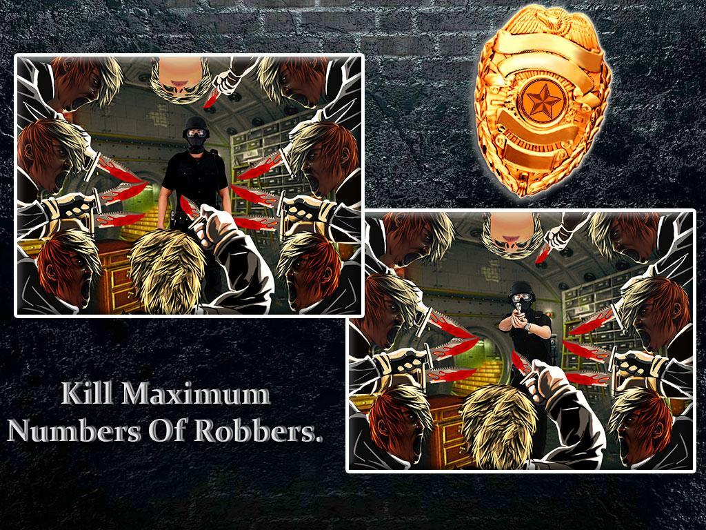 You need to hit headshot. shoot down all robbers. you are American Cops save the bank and Museum If you don't speed up than Robbers Murder the innocence people than save this murder case.