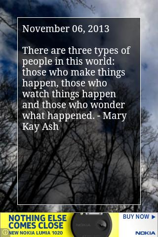 هل ترغب في الحصول على اقتباس يومي يساعدك على البقاء إيجابيًا طوال اليوم؟ يقدم هذا التطبيق اقتباسًا إيجابيًا يوميًا على رأس خلفية ذات مناظر خلابة جميلة من أجل مساعدتك في أن تكون إيجابيًا كل يوم. كل شخص يحتاج إلى المزيد من الإيجابية في حياتهم. لذا ابدأ في الحصول علىك الآن!