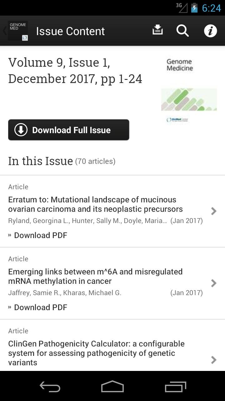 الاستفادة من أحدث التطورات في Genome Medicine مع تطبيق Genome Medicine . Genome Medicine هي مجلة الوصول المفتوحة التي تمت مراجعتها من قبل النظراء التي نشرتها Biomed Central. تنشر المجلة مقالات البحث والأساليب الجديدة وأدوات البرمجيات في جميع مجالات الطب التي تمت دراستها من منظور ما بعد الجينوم. توفر المجلة أيضًا المراجعة والتعليق على أحدث التطورات في علم الجينوم الترجمي والطب الشخصي ، وآثارها على الإدارة السريرية والأخلاقية لصحة الإنسان والمرض.