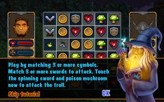 اصنع مباريات من ثلاثة رموز أو أكثر للعب هذا الألغاز الخيالية. جمع الفطر السحري ، أو الدروع ، لإلقاء تعويذات قوية. احترس! خصومك يقاتلون.
