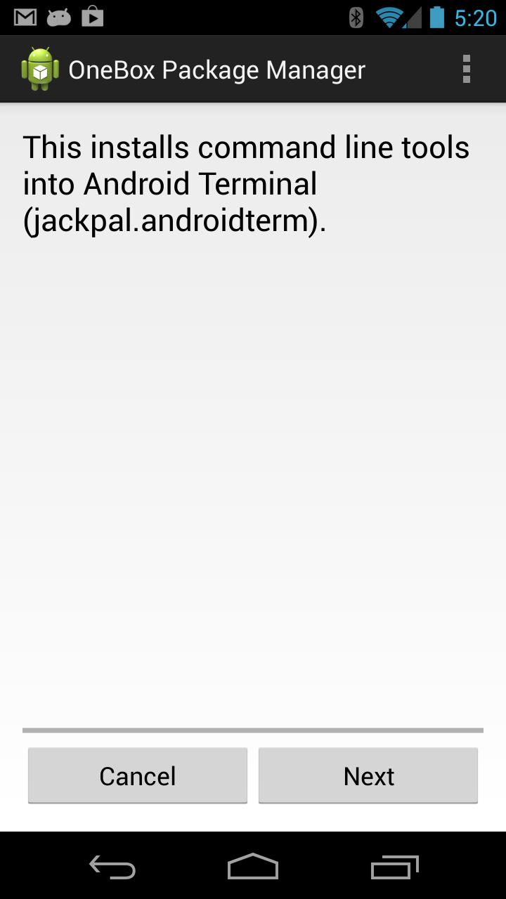 OneBox عبارة عن حزمة توزيع لتشغيل أدوات سطر أوامر إضافية (مثل Kbox2) على أجهزة Android غير الجذرية.