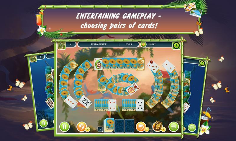 Pack your suitcase and head out on an exciting tour to a country of summer excitement! Classic solitaire complete with original game mechanics, perfectly suited for fans of traditional solitaire and connoisseurs of unusual gameplay styles alike. Match cards as fast as you can and a special multiplier will increase your reward! Buy useful bonuses: mulligan, shuffle and the Joker. Premium-quality graphics: colorful levels and outlandish tropical music will take you to the resort of your dreams and help you immerse yourself in the atmosphere of the summer holidays.