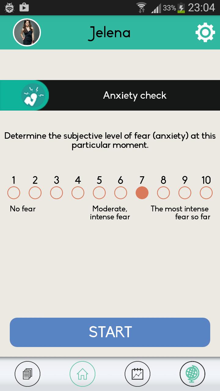 Breathing exercise – this application has the goal of helping a user acquire two key Breathing exercises which directly influence lowering hyperventilation, heart beating, shiver, anxiety, tension and panic attack. The slow breathing exercise is used in the very situation of anxiety, discomfort and panic, while the deep breathing exercise is done in the particular times in order to help the user acquire the technique of correct, deep, abdominal breathing. It is recommended for everyone since the exercises can help in situations of stress and nervousness.