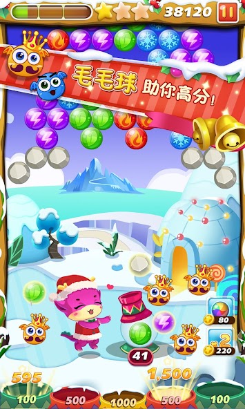 3.Clear all the bubbles on the screen to level up,and try to get 3 stars on each level.