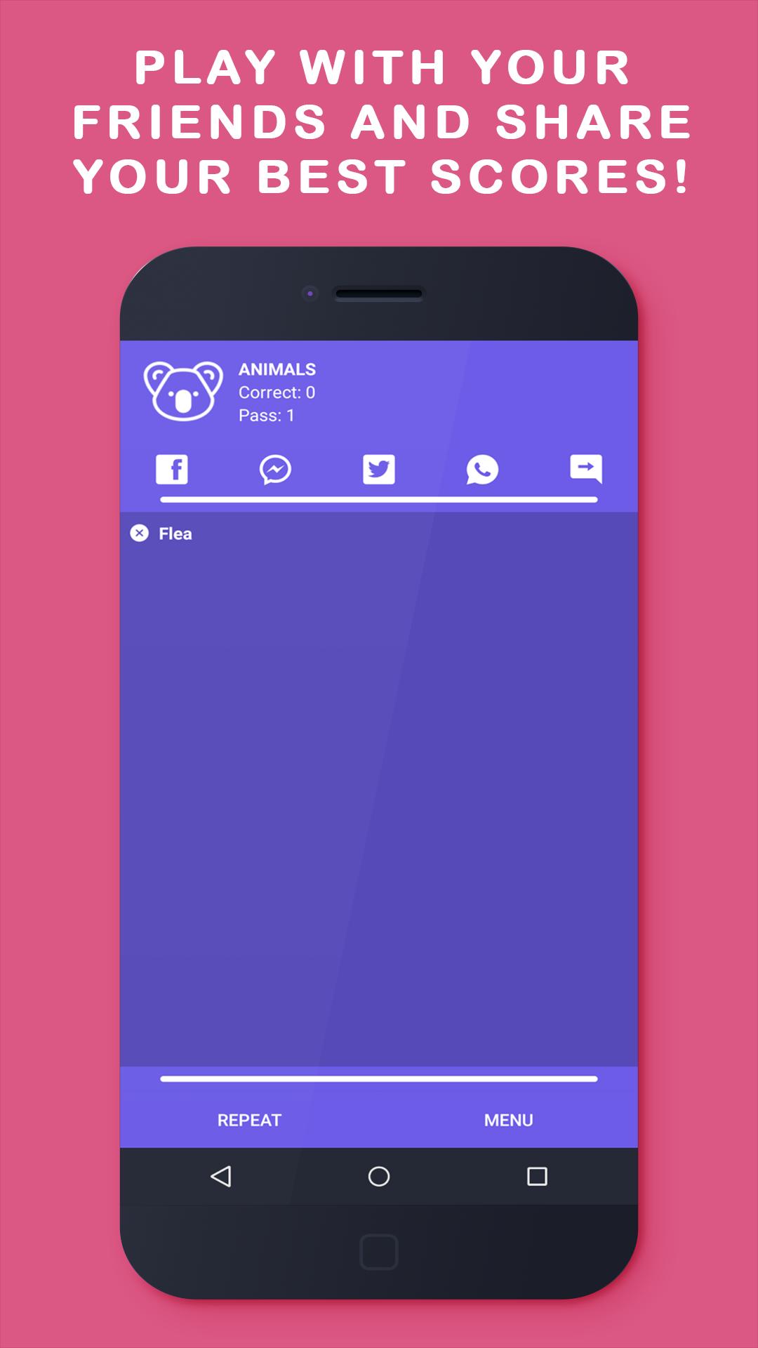 After choosing one of our more than 30 categories you will have to make your friend guess which word has appeared. The person who guesses more words will win!