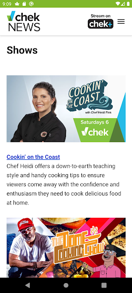 On the app, you'll find a program schedule for all the shows on CHEK TV (formerly CHEK 6).