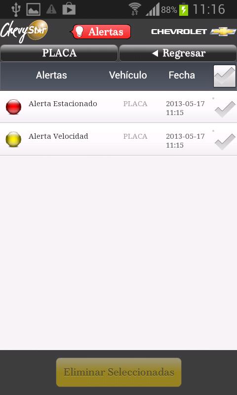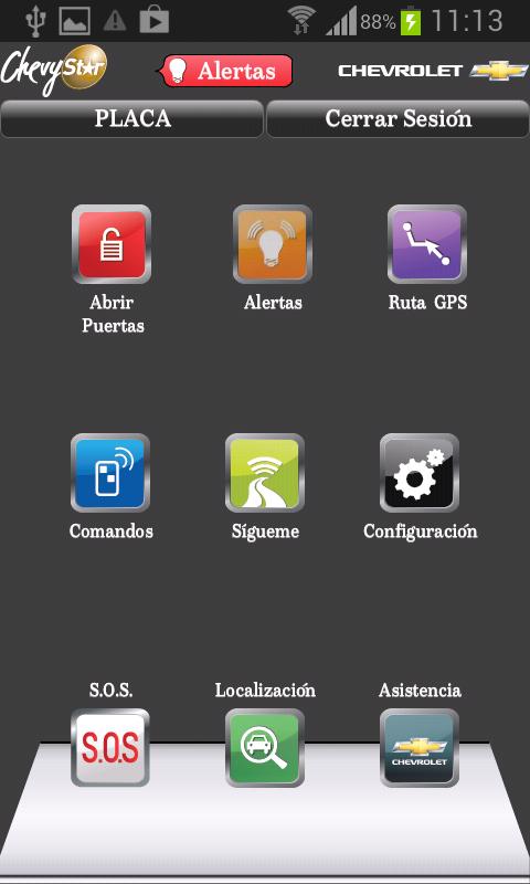 * S.O.S emergency button (send an emergency message to ChevyStar´S security Call Center).