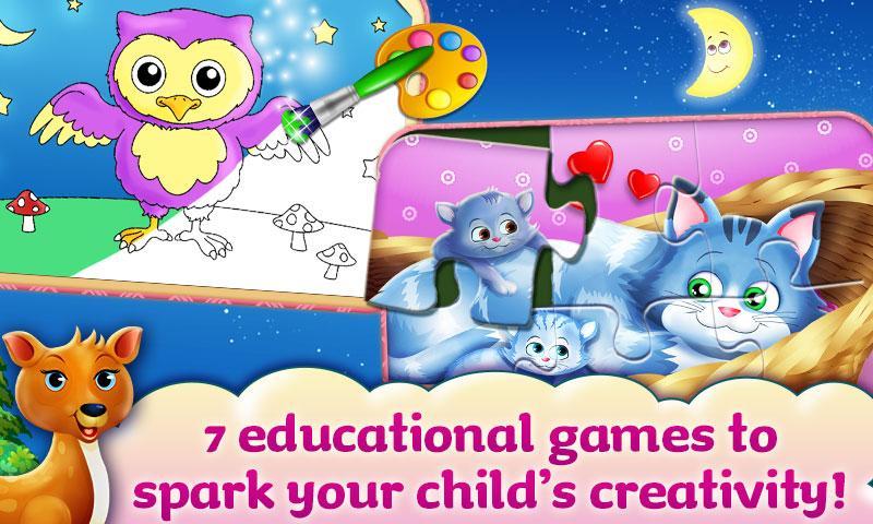 > 7 fun and educational mini games including Paint, Puzzles, Match It, Tap the Animals, Counting, Maze and Peekaboo.