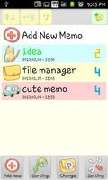 'Cute memo' is a simple and convenient memo application. You can post multiple notes and arrange them using colors, categories and cute icons. Security function protects your important posts against unwanted attention. In addition, you can post your memos as a widget, anywhere you want. Your messages can be easily migrated to a different phone, you will never lose another post again!