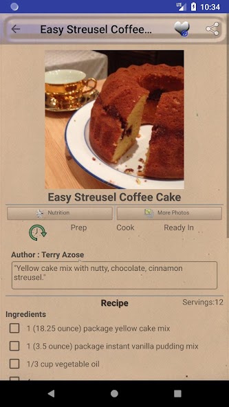 and lots more. You can search the recipe you needs to cook by recipe name,recipe category name etc. This app is a perfectly designed cookbook. The interface of this app is very nicely designed. You can also access recipes without internet by adding recipes to offline collection. You can share your loved recipes to your loved ones. All recipes in our app " Bundt Cake Recipes ~ Bundt Pan Recipes" are very easy to prepare and cook. And our app has step by step guidance for preparation. Bookmark and manage your favorite foods recipes.