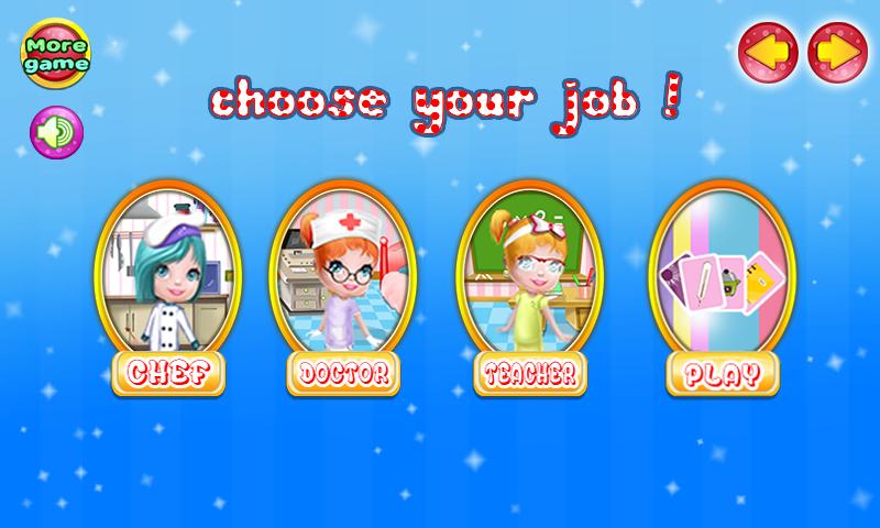 Hallo, wenn wir noch klein sind, möchten wir einen wichtigen Job haben, um uns zu helfen, glücklich zu sein, und wenn wir helfen können und die Menschen um uns herum sind besser. Es ist sehr befriedigend, das Lächeln im Gesicht der Menschen zu sehen, wenn wir ihnen helfen. Zum Beispiel kann ein Arzt seine Patienten glücklich machen, wenn er ihnen hilft, den Schmerzen zu entkommen oder ihnen gute Nachrichten zu geben. Was willst du werden, wenn du älter bist? Sicherlich haben Sie bereits sehr hoch und wissen genau, was Sie studieren müssen. Dieses Kinderspiel ist sehr schön und bietet Ihnen die Möglichkeit, viele Geschäfte zu üben. Sie werden in der Lage sein, die Rolle eines Kochs, eines Lehrers und eines Arztes zu spielen. Um das Spiel beenden zu können, seien Sie bitte vorsichtig mit den Details dieses Spiels für Mädchen.