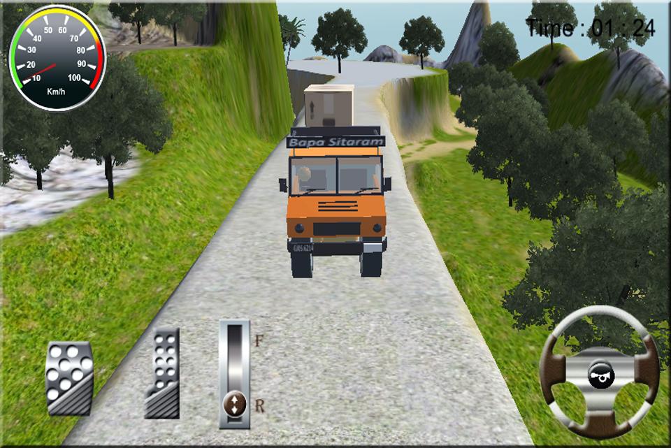 Game Surround Mountain and Forest Route. LKW -Simulator für den Transport rund um die Hügelstation.