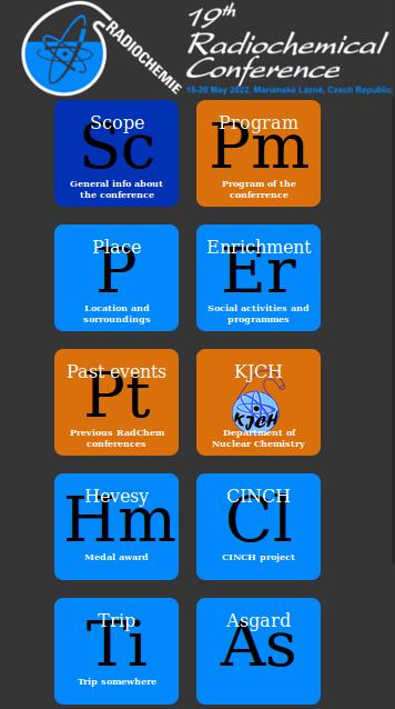 Anwendung für die Redner und Teilnehmer der 19. Radiochemikalkonferenz, die von der Fakultät für Nuklearwissenschaften und Physikalisch, CTU, Prag, organisiert wurde.