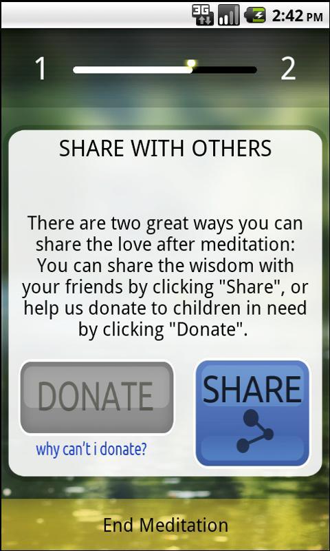 Dharma Meditation Trainer is your personal trainer for relaxing and enlightening meditation. It features 10 levels of enlightenment with deeper quotes to meditate on in every level. All with a simple to use meditation timer.