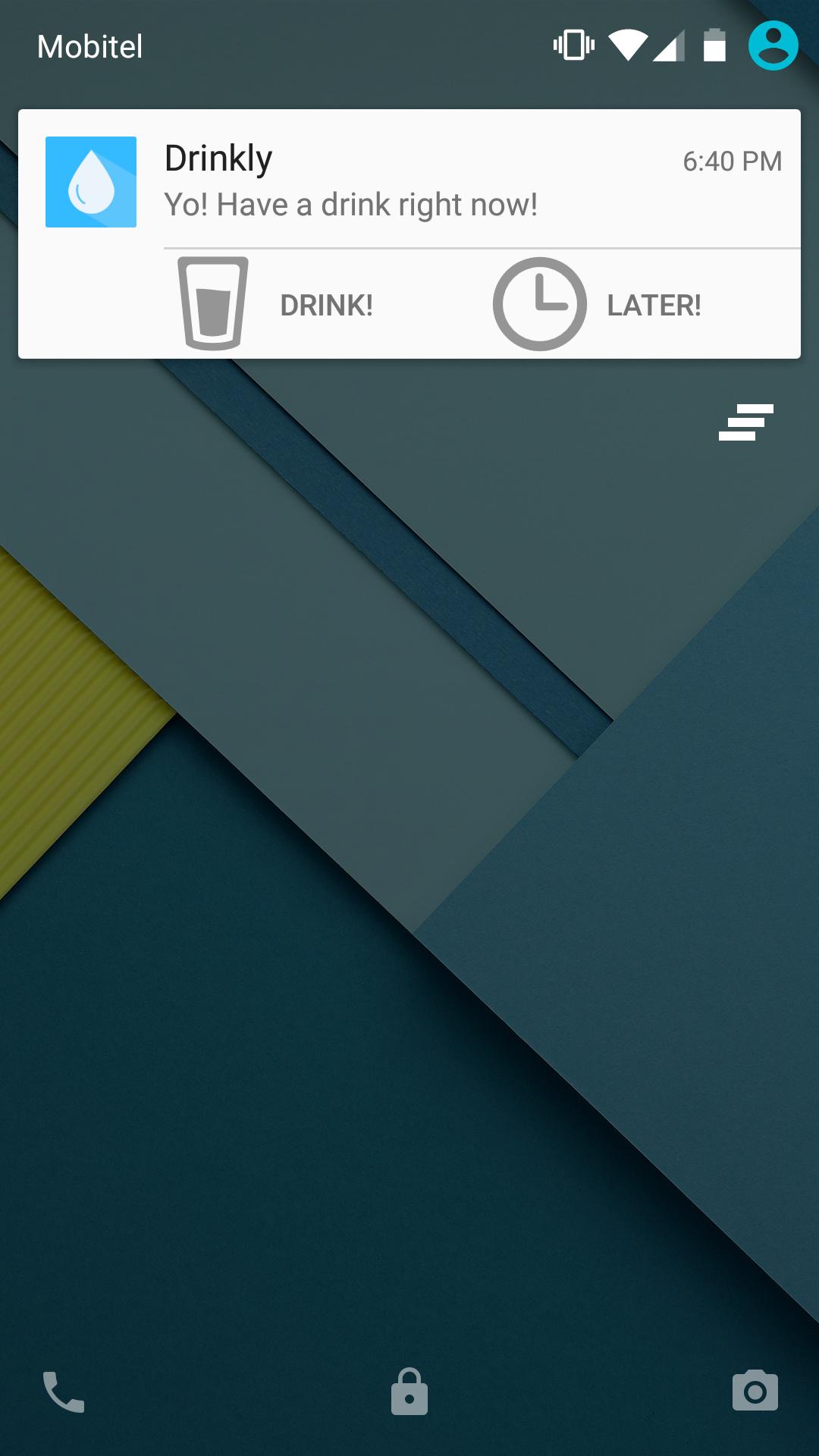 This very simple app will remind you to drink something every 2 hours. It won't bother you with anything else. It will start sending you notifications every 2 hours after you press START, and if you want it to stop, simply run the app again and press STOP.