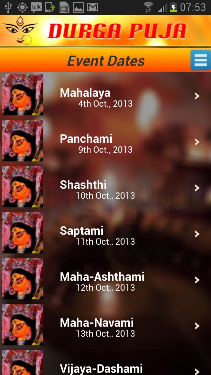 Through this app user can know more about Durga Puja, importance of each day,the legend behind it, how puja is done, what are the things required and day, date and proper puja timings as per hindu calendar.