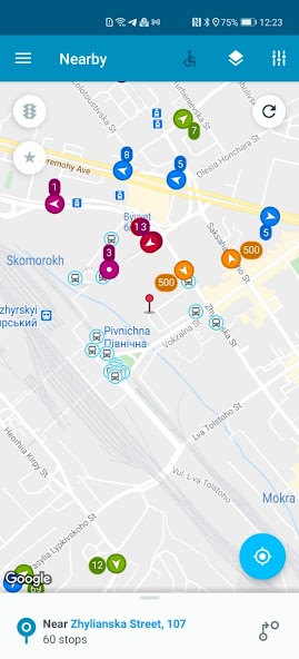 - Full list of current public transport routes, display-on-the-map possibility in the provided cities