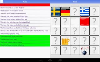 This application provides an easier way to solve the puzzle. It presents the rules and the board in the same screen and allows you to easily make selections. It highlights red or green a rule automatically, when it is violated or fulfilled. It also offers easier variations of the puzzles, with fewer houses and properties.