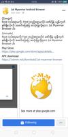 1st Myanmar Browser es Fuentes Birmanos (Myanmar Unicode, Zawgyi-One y Wininnwa) admitió el navegador Android.