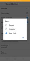 Se admite la pantalla de fuentes dual (Zawgyi y Unicode).
