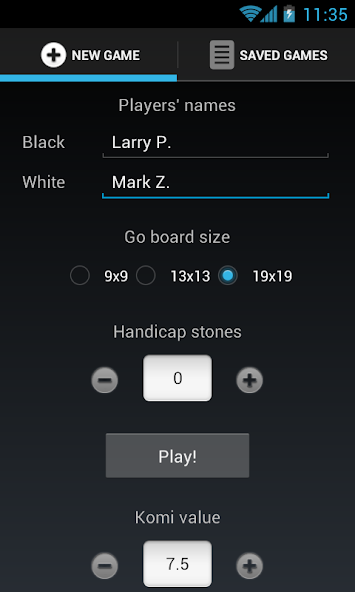 * Komi (7.5 por defecto, 0.5 para juegos de discapacidad)