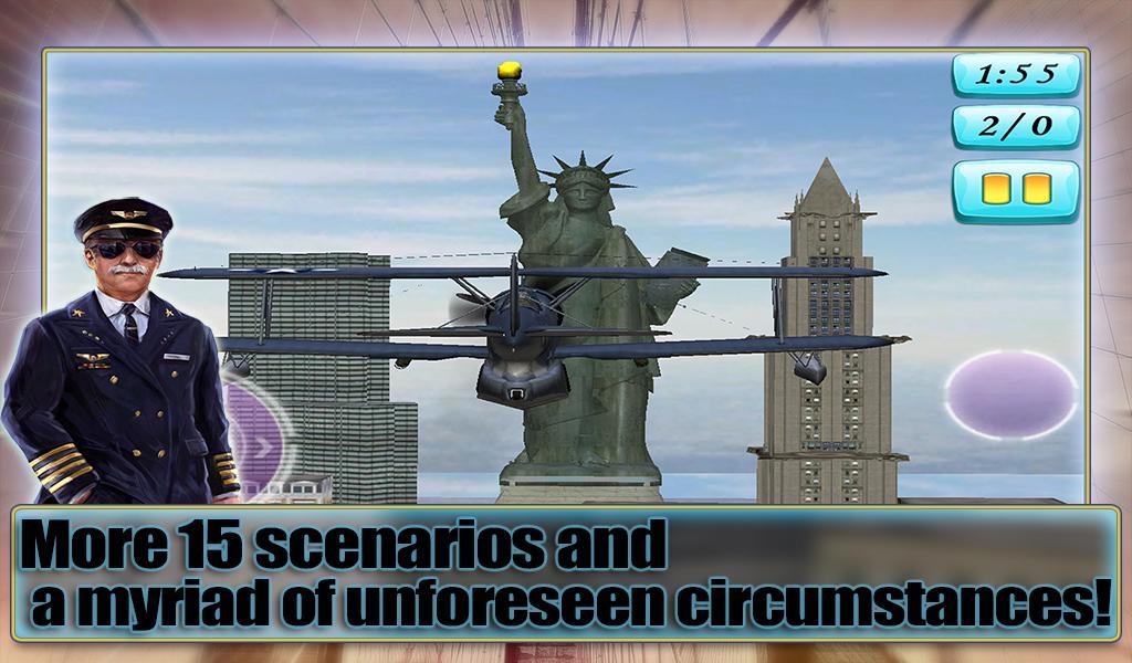 ¡Disfruta del poder de un simulador de vuelo completo en tu mano! 3D Air Race - NYC Pilots tiene el más alto grado de realismo para los dispositivos móviles. Atraerá tanto para principiantes como para pilotos experimentados. Para su elección, hay un conjunto de modelos de aeronaves detallados, mapas de varias partes del mundo, un modo de día / noche, una variedad de condiciones climáticas y grandes oportunidades para cambiar los parámetros del peso de despegue en Air Race - New York Pilots 3D .