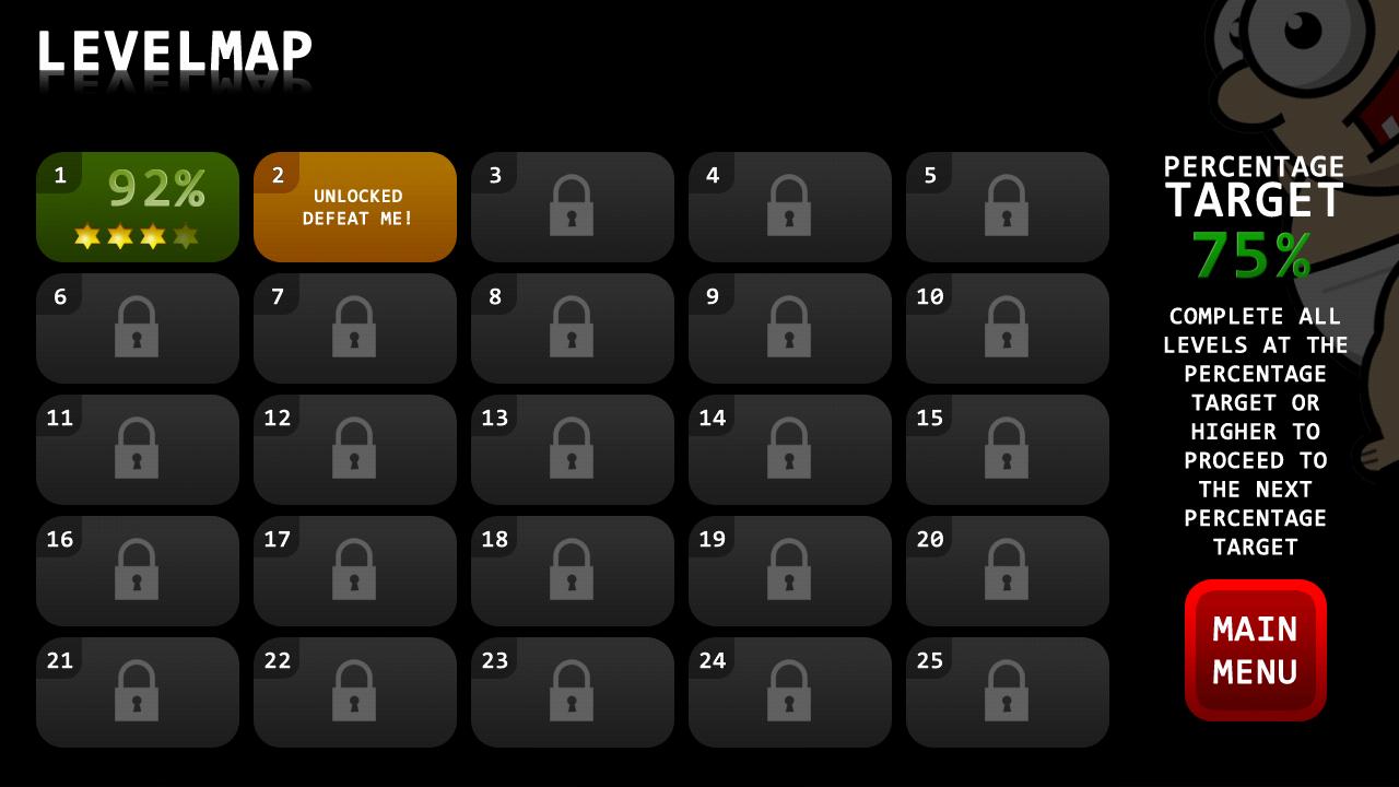 Hay 25 niveles de dificultades que deben eliminarse en un porcentaje específico (en comparación con el tiempo objetivo/distancia del evento). Cuando se hayan eliminado los 25 niveles, el porcentaje objetivo aumentará con el 5% y los 25 niveles son buenos para ir nuevamente, ¡pero incluso más difícil!
