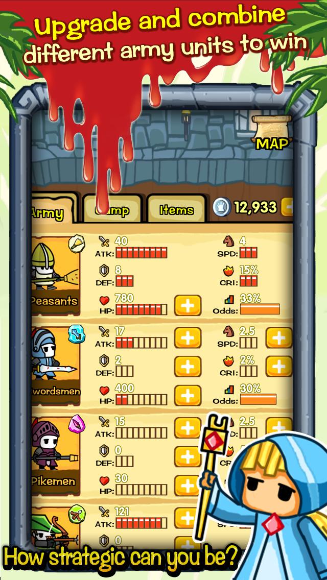 • 12 tipos de soldado. ¡Actualiza y lucha con cualquier combinación de soldado que quieras!