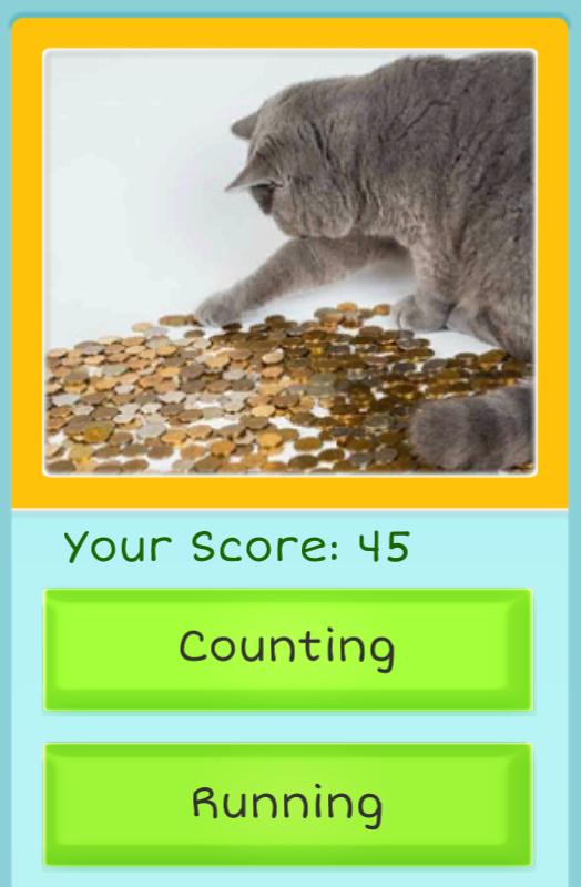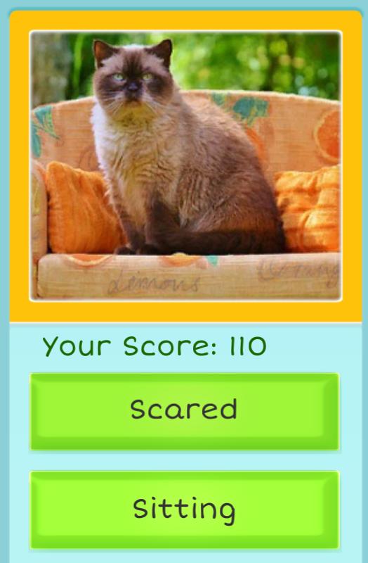 Vea si sabe lo que está haciendo el gato y coincidir con la palabra correcta.