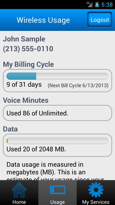 Nota importante: habrá un retraso de tiempo entre el final de una sesión de datos y el punto en el que aparecerá el último uso de datos.