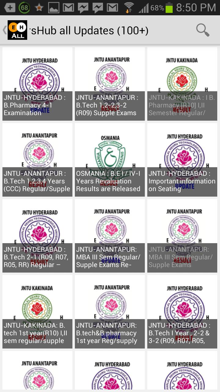 - Actualizaciones de Jntuh, Jntuk, Jntua y Osmania