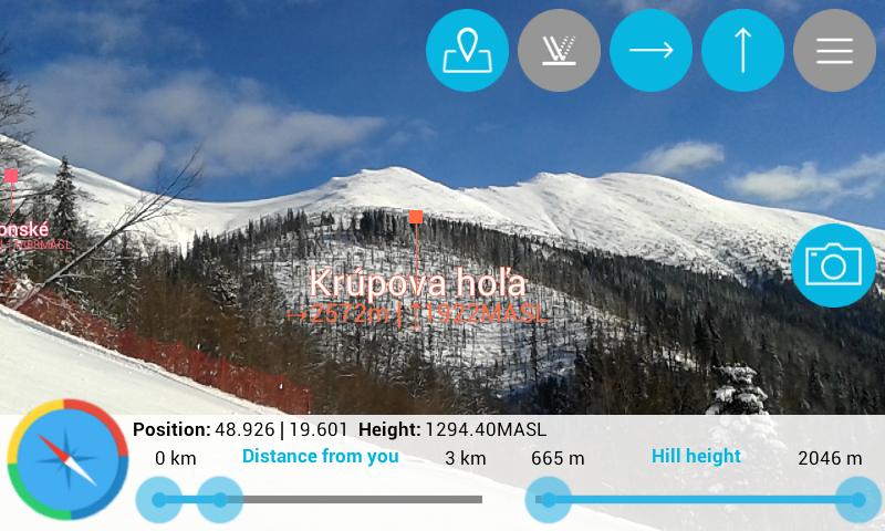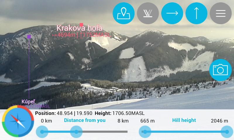 Conozca las colinas y las montañas a su alrededor usando nuestra aplicación y la cámara de su propio teléfono inteligente.