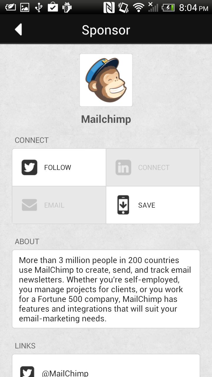 ¡La aplicación Handheld Conference and Expo simplifica el seguimiento con las personas que conoces en el evento! Conéctese instantáneamente a otros asistentes a través de LinkedIn, Twitter o correo electrónico, o guarde su información directamente a su teléfono.