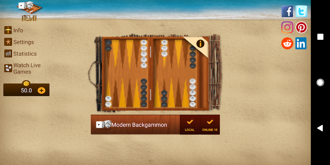 Juega Backgammon contra tus amigos de Facebook o a través del dispositivo Bluetooth