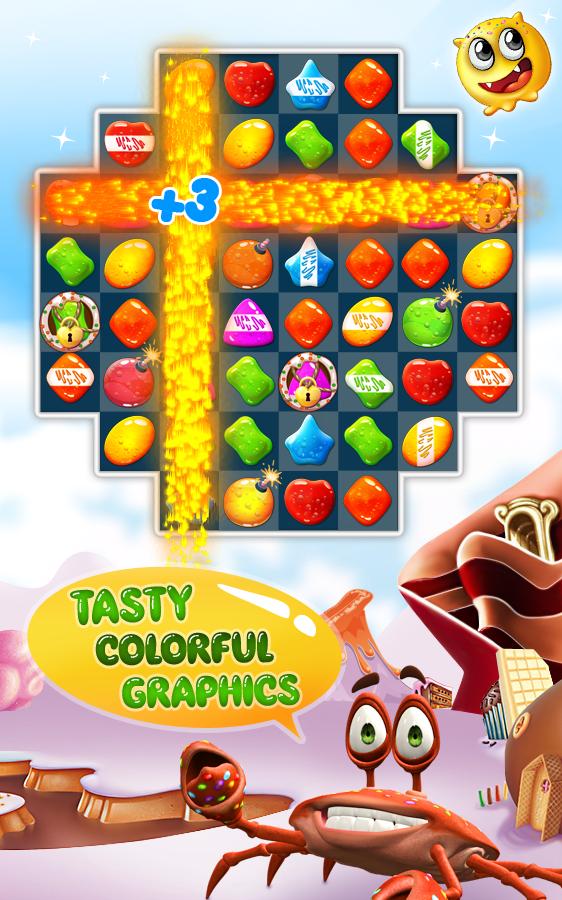 Jelly Smash : ¡delicioso juego de rompecabezas a juego con lindos personajes y niveles adictivos! Ayude a Emma a recolectar gelatinas a través de muchas tierras dulces, ¡pero tenga cuidado con los monstruos! Intentan atacar el Reino Jelly comiendo pasteles y haciendo obstáculos. ¡Emma y Jolly Crab deben derrotar a los monstruos y hacer que las tierras se conviertan en un paraíso de la gelatina!