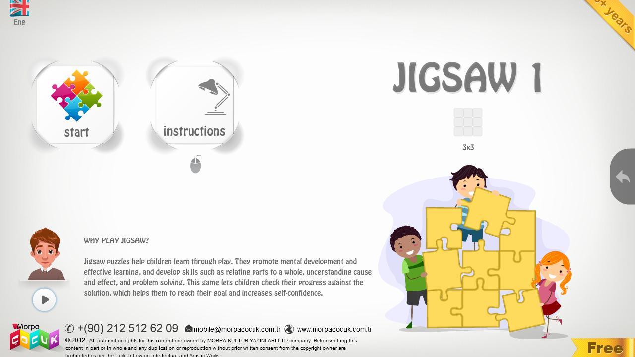 Un juego educativo para las edades de 3+, 4+ y 5+. Ayuda al desarrollo mental de los niños con rompecabezas con tres niveles de dificultad para diferentes edades (piezas 3x3, 4x4 y 6x6). Dos opiones de idiomas: turco e inglés.