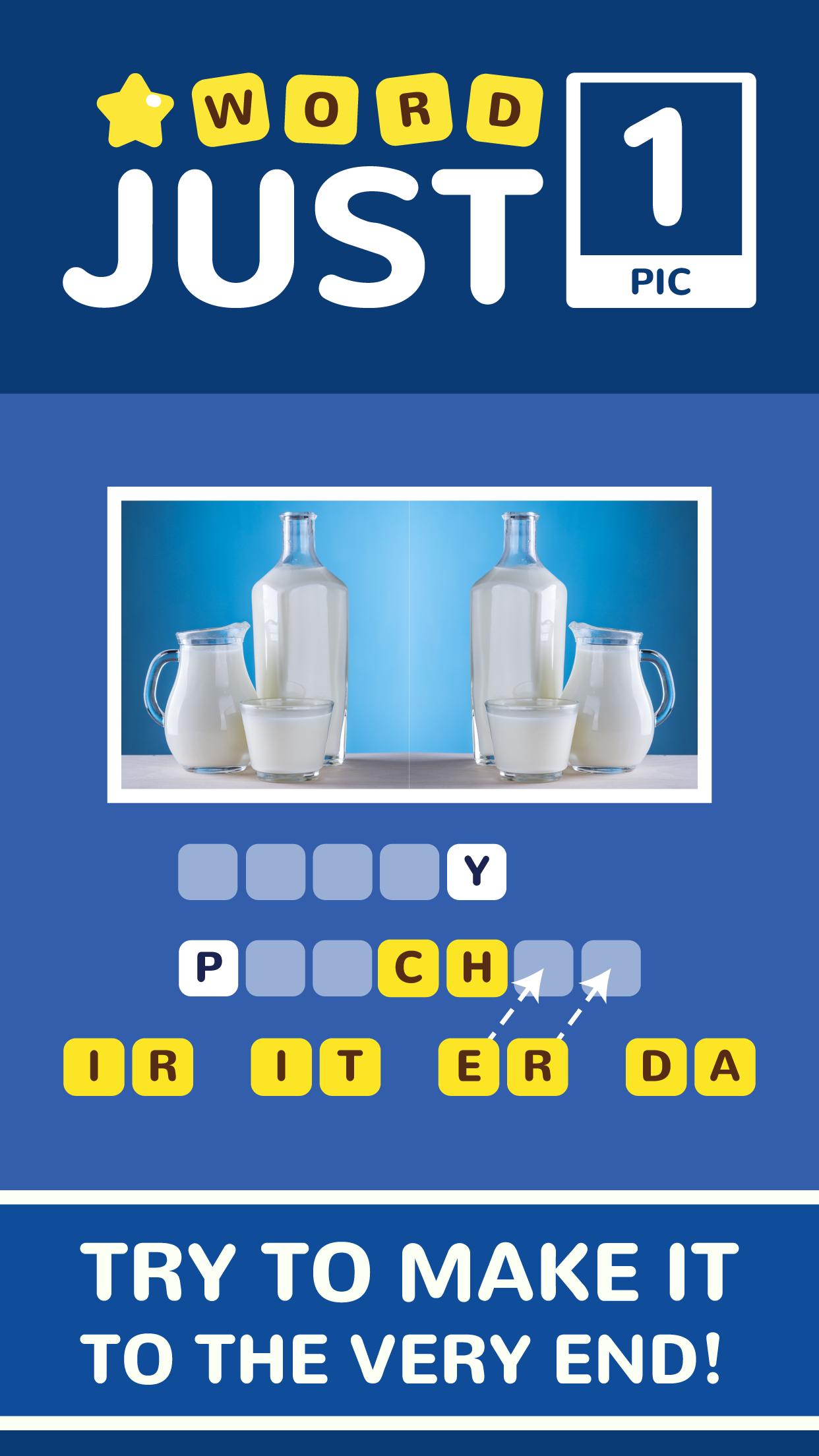 Vea si puede manejar los rompecabezas de palabras adictivas de este divertido juego de palabras, Just 1 Pic !