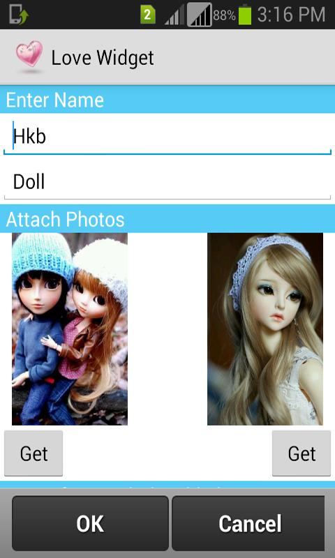 Ingresar sus nombres y la fecha de sus relaciones comenzó o la fecha de la boda, y Widget calculará la duración de su tiempo de amor.