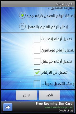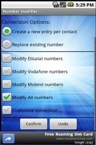 Esta aplicación modifica los números de teléfono móvil en sus contactos en función del nuevo plan de numeración que seguirán los operadores móviles en Egipto. También podrá personalizar manualmente la modificación, elegir modificar los números de un determinado operador (o todos ellos) y reversión (no en caso de modificación personalizada).