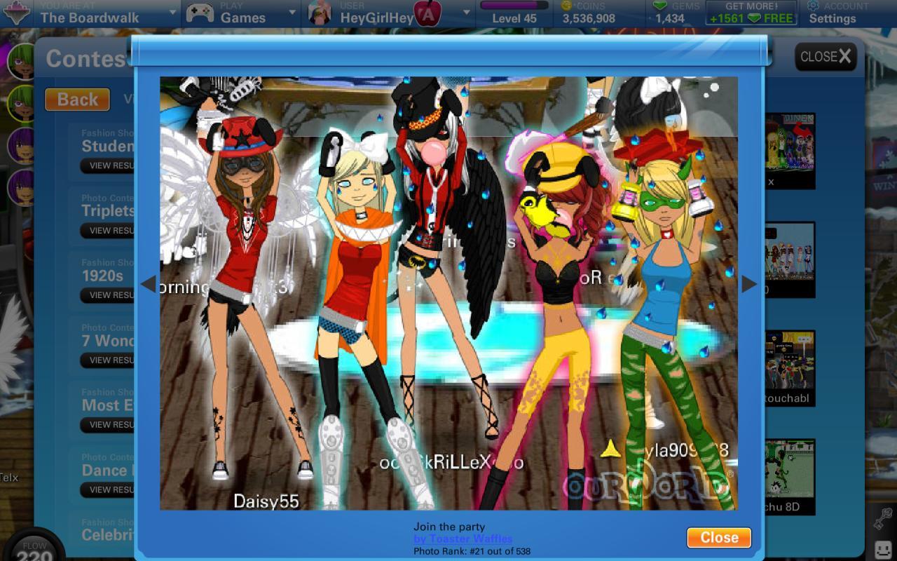 Salga con tus amigos en los fabulosos clubes de baile, cafeterías, playas y lugares de compras en ourWorld . Tienes tu propio condominio y misiones para actuar a medida que te elevas a través de las filas de los meta juego de rol que pegan la experiencia.