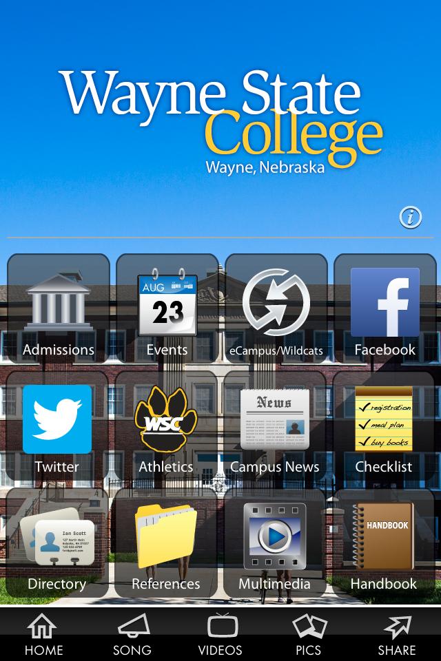La aplicación oficial de Wayne State College en Wayne, Nebraska.