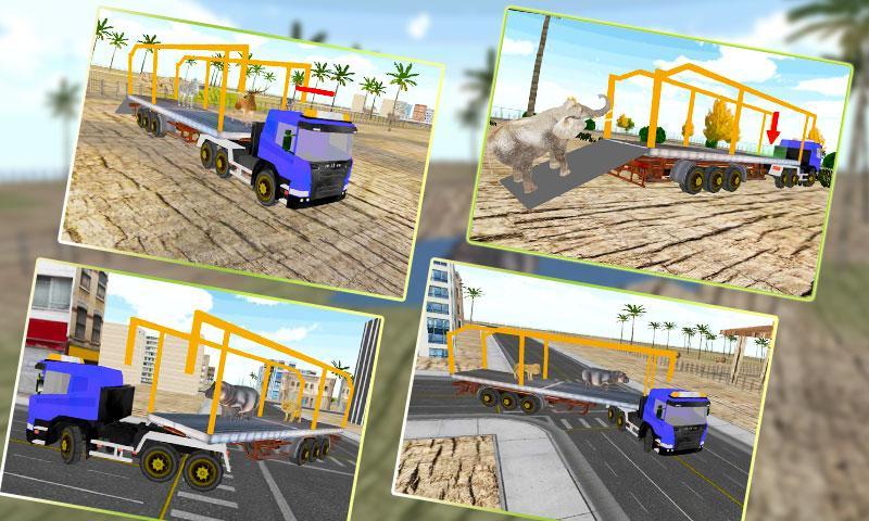 Aquí hay una simulación totalmente nueva y diferente en la que tienes que viajar sobre bestias salvajes, cargarlas en el remolque de camiones transportadores y dejarlas en el zoológico de la ciudad. Go to forest or jungle, get the animals like elephant, lion, bear, hippopotamus, zebra, stag and pig etc. to zoo. El juego interactivo contiene varias actividades como el control y el viaje sobre sus bestias salvajes reales una por una y llevarlas al remolque del camión transportador, ahora sea un camionero. Drive your truck through forest, reach to city and get animals to zoo.