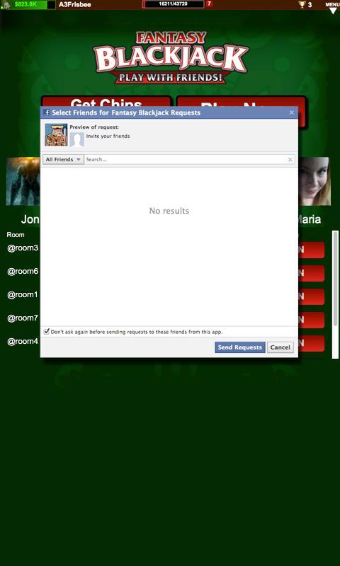 Lottery hosted Blackjack table game. Play with friends, chat while you play, win chips to reach new levels and unlock high roller rooms, use chips to send virtual gifts to your friends. You can log in with your Twitter or Facebook account to invite friends to play and brag on your wins.