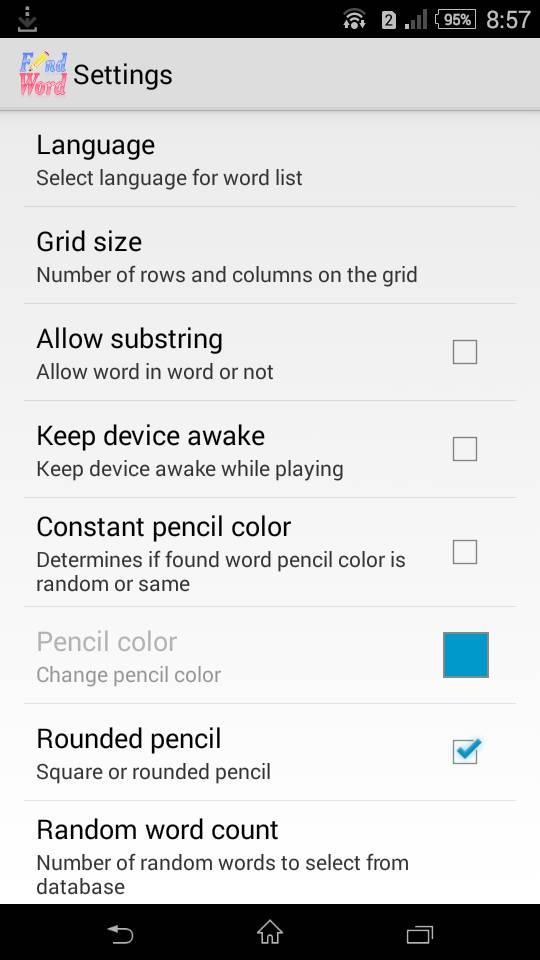 In this Word Search game for free, you can play from easy grid 5 x 5 games up to extreme challenges grid of 15 x 15.