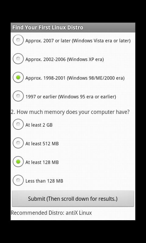 Welcome to Find Your First Linux Distro - Basic Edition! That old PC still has value. This app helps you select your first Linux distro based on the specs of your PC.