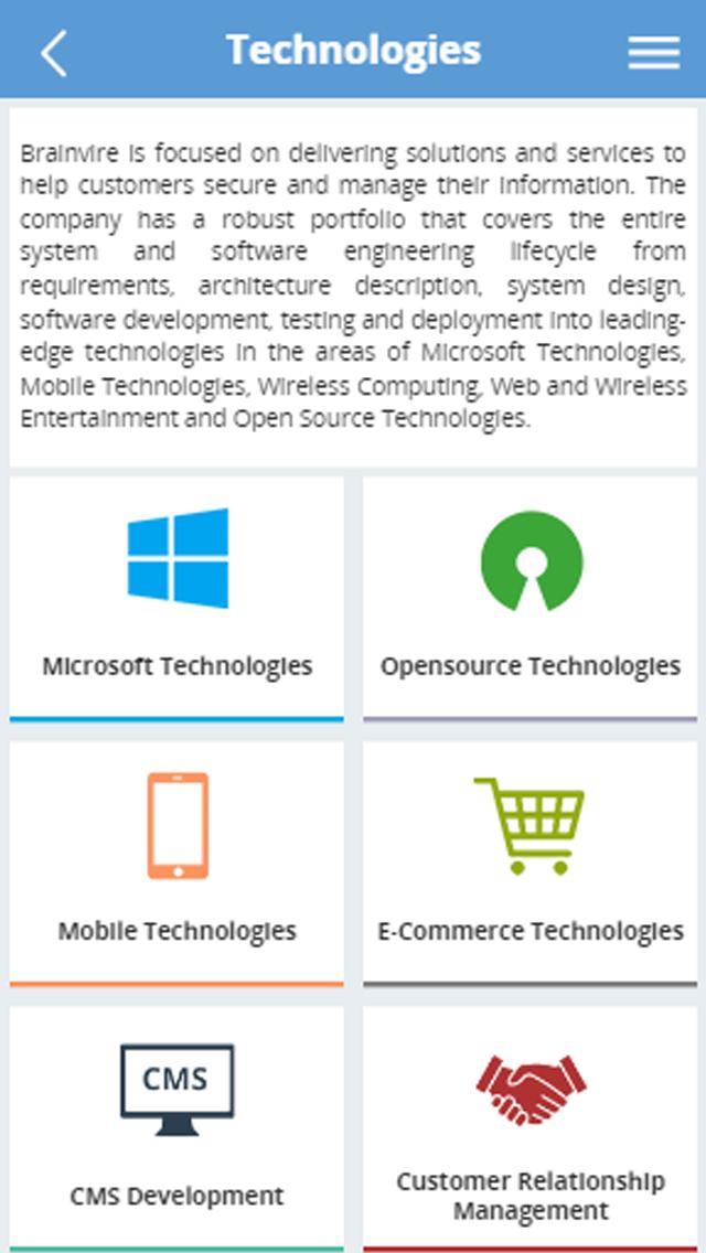 Technology: This section highlights the latest technologies and services that Brainvire provides to its clients across the globe.