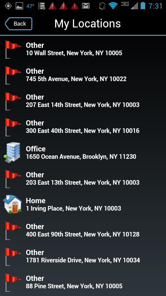 • Adresses récentes basées sur le GPS ou réservations d'aéroport