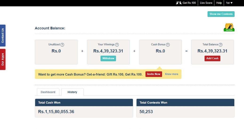 KC a gagné environ 1,5 crore dans Dream11 et de nombreux grands prix comme la voiture, les vélos, etc. partout dans le monde.
