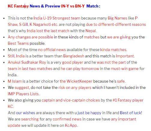 Vous pouvez utiliser des conseils KC et des nouvelles pour jouer sur des sites comme Dream11, Halaplay,